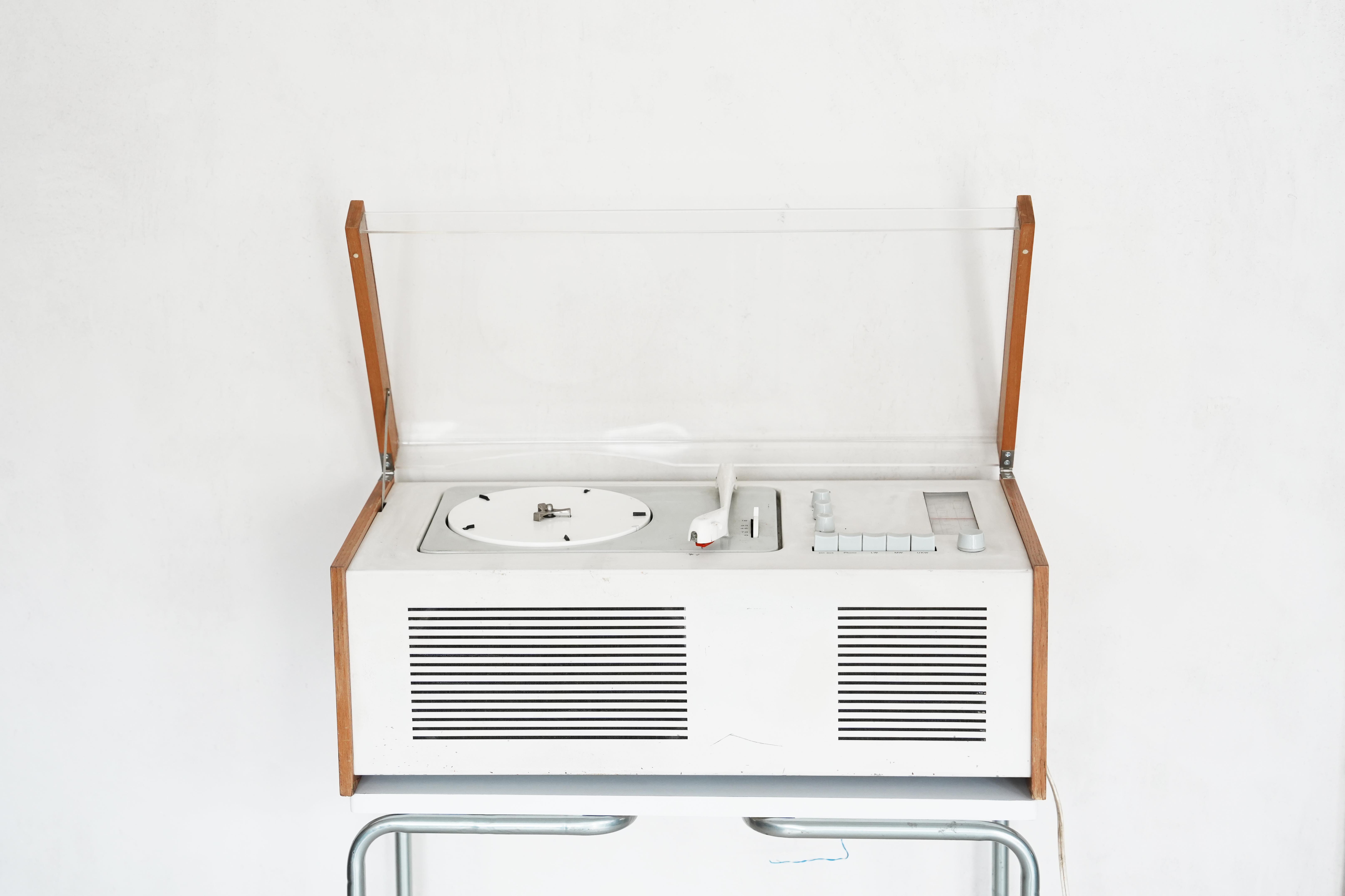 這款被稱為「白雪公主的棺材(Snow White’s Coffin)」的唱機,是 Rams 早期最具代表性的設計之一,透明的塑膠防塵護蓋在當時可說是突破性的創新,讓人們「透視」音響設備內部,而不需要再對著沉重的木製音響大傷腦筋。