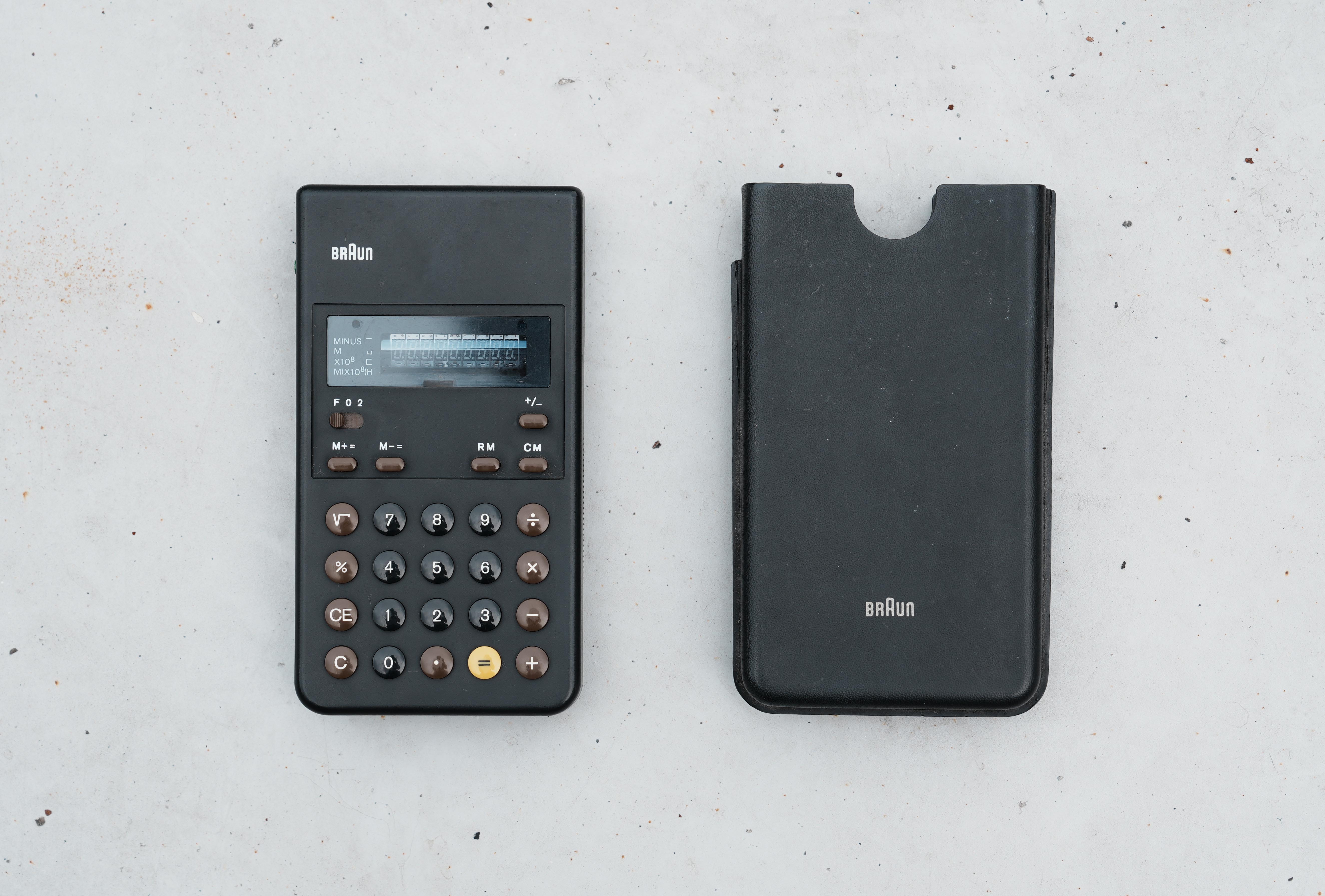 這款計算機的設計極其簡約,以黑色機身搭配橘色的「=」按鈕,強調清晰易用的設計語言。後來,它的影響力甚至延伸到了 iPhone 的計算機介面。